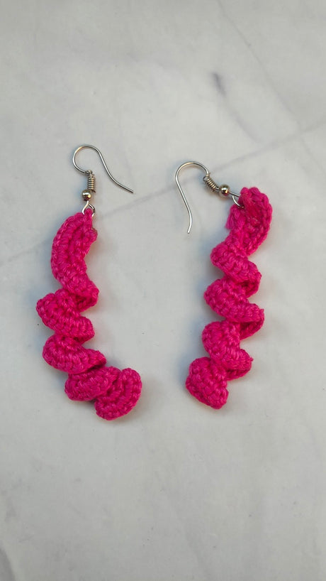575 INR1,000Unit price /UnavailablePink Twisted Handcrafted Crochet Dangler Earrings