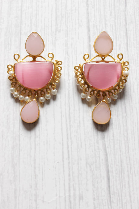 375 INR600Unit price /UnavailablePink Natural Stone Embedded Brass Dangler Earrings