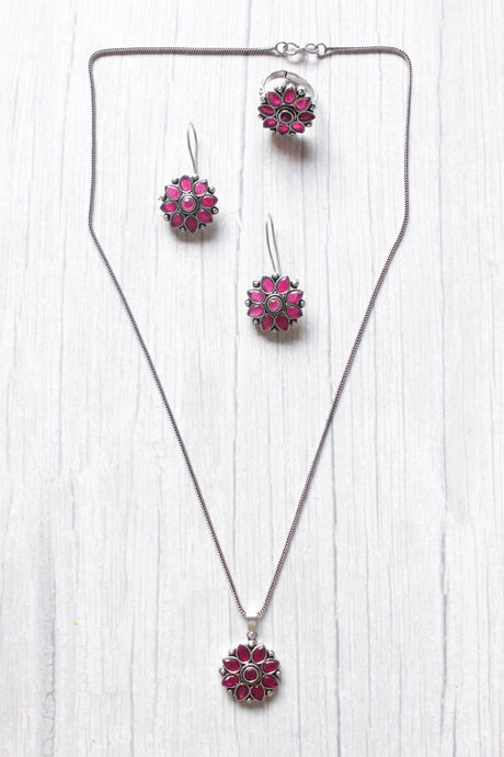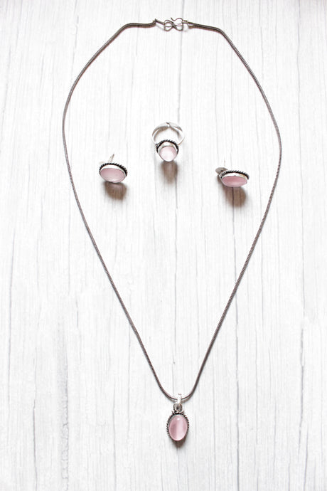325 INR600Unit price /UnavailablePink Natural Stone Embedded Silver Finish Necklace Set with Ring