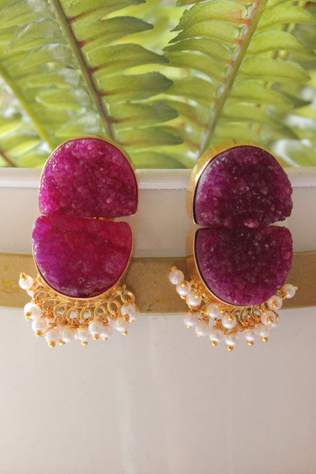 450 INR500Unit price /UnavailablePink Sugar Druzy and Pearl Natural Gemstone Silver Finish Earrings