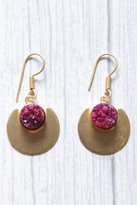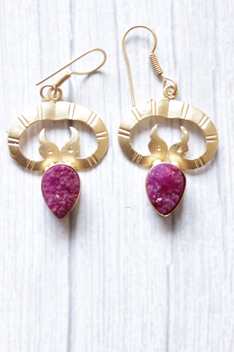425 INR600Unit price /UnavailablePink Natural Sugar Druzy Gemstone Gold Plated D Shape Dangler Earrings