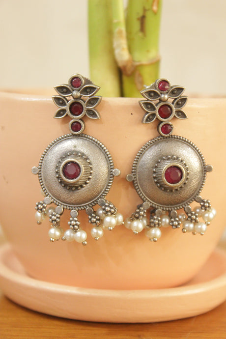 350 INR500Unit price /UnavailableRed Glass Stones Embedded Silver Finish Jhumka Earrings