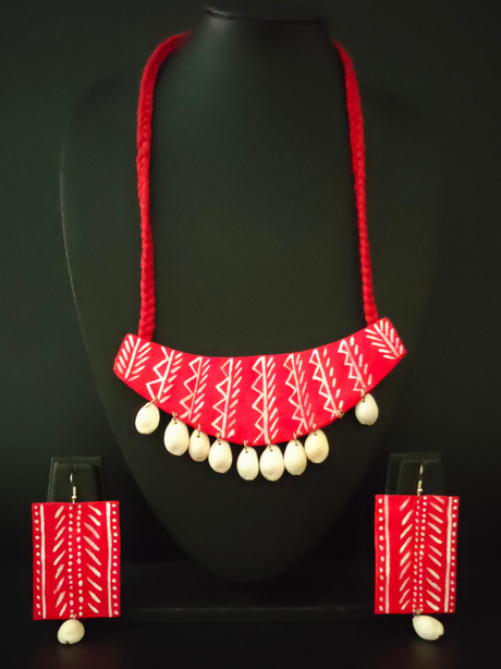 325 INR675Unit price /UnavailableRed Hand Painted Fabric Necklace Set with Shells