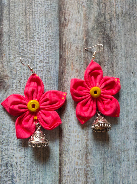 424 INR499Unit price /UnavailableRed Flower Shaped Fabric Earrings with Jhumkas