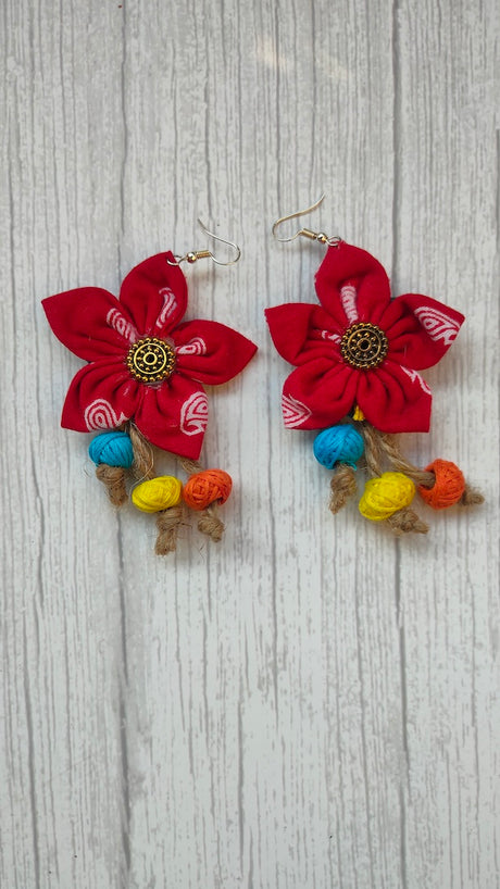 675 INR999Unit price /UnavailableRed Cotton Fabric Handmade Flower Earrings with Metal Chain Danglers