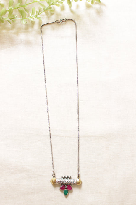 999Unit price /Unavailable Ruby & Green Glass Stones Embedded Petite Dual Tone Pendant Chain Necklace