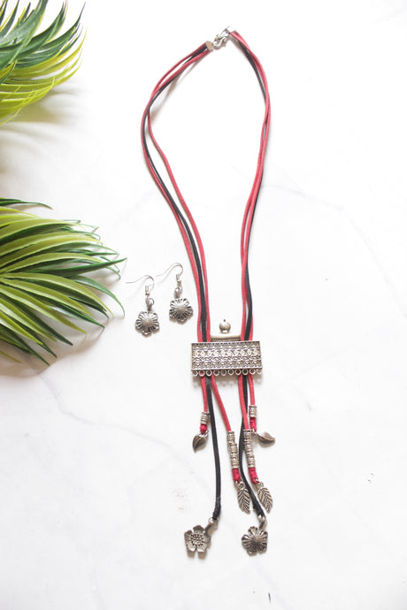 525 INR850Unit price /UnavailableRuby Glass Stones Embedded Petite Oxidised Finish Pendant Chain Necklace