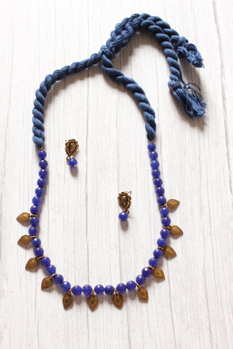 595 INR850Unit price /UnavailableRoyal Blue Glass Beads 3 Layer Necklace Set Embellished with Delicate Flower Motif Charms
