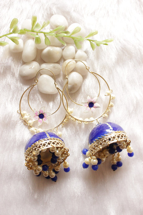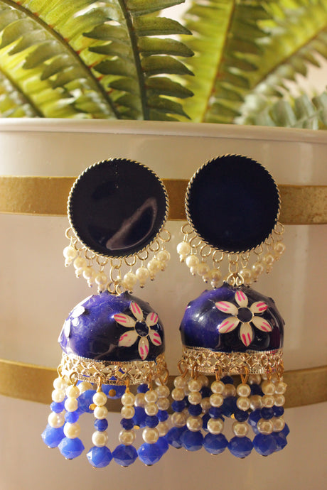 650 INR700Unit price /UnavailableRoyal Blue and Green Enamel Painted Afghani Chandbali Dangler Earrings with Ghungroo Beads