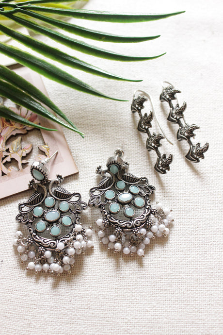 325 INR525Unit price /UnavailableSea Green Statement Stone Embedded Oxidised Finish Brass Earrings