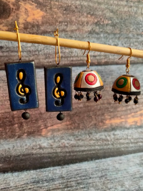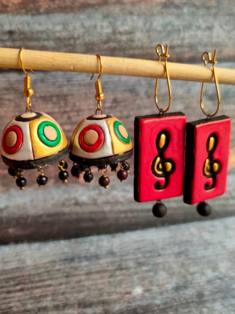 575 INR899Unit price /UnavailableSet of 2 (Jhumka and Musical Note) Handcrafted Terracotta Clay Earrings