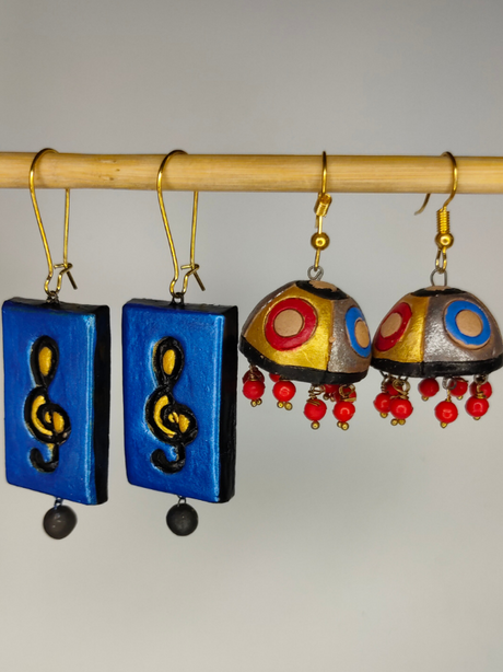 325 INR450Unit price /UnavailableSet of 2 Handcrafted Terracotta Clay Earrings - Jhumka and Musical Note