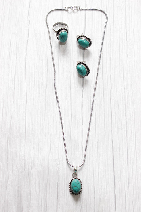 450 INR599Unit price /UnavailableSet of 2 - Turquoise Natural Stone Embedded Necklace Set in Silver Finish with Ring