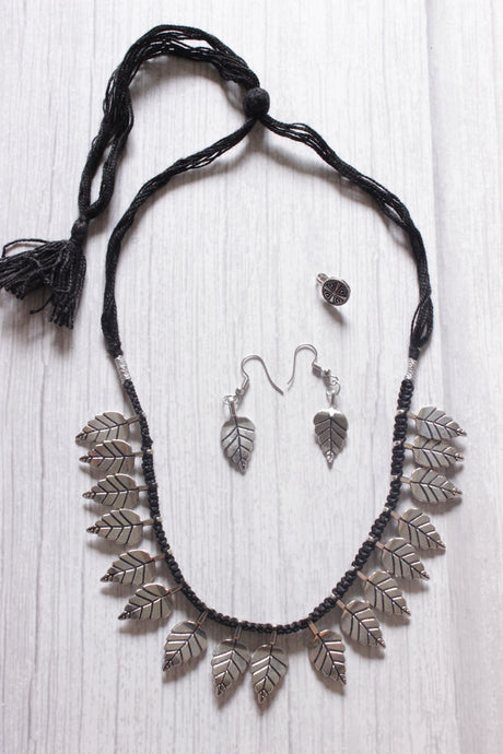 475 INR699Unit price /UnavailableSet of 3 Leaf Motif Black Beads Braided Necklace Set with Nosepin