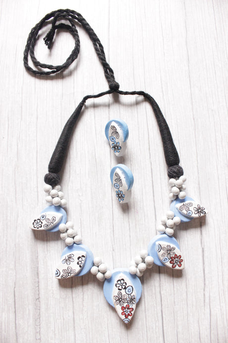 325 INR500Unit price /UnavailableSky Blue Flowers Hand Painted Terracotta Clay Choker Necklace Set with Adjustable Thread Closure