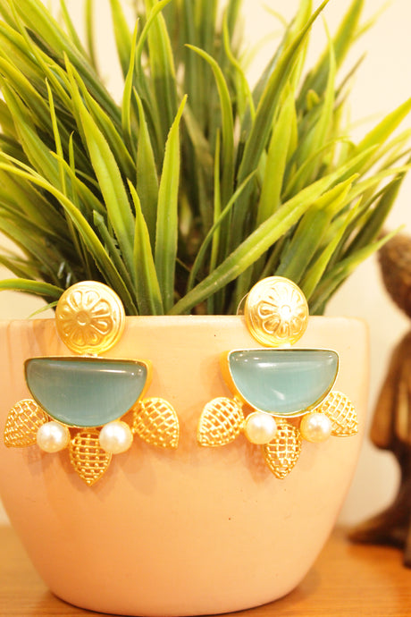 425 INR600Unit price /UnavailableSky Blue Natural Gemstones Embedded Brass Dangler Earrings