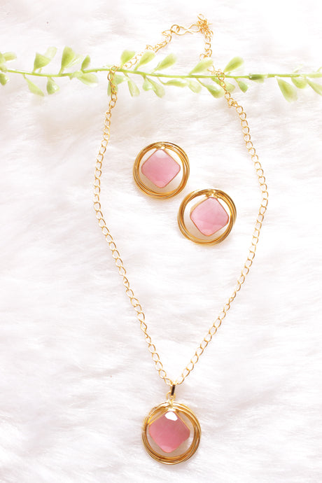 400 INR500Unit price /UnavailableSoft Pink Raw Natural Gemstones Embedded Gold Finish Chain Necklace Set