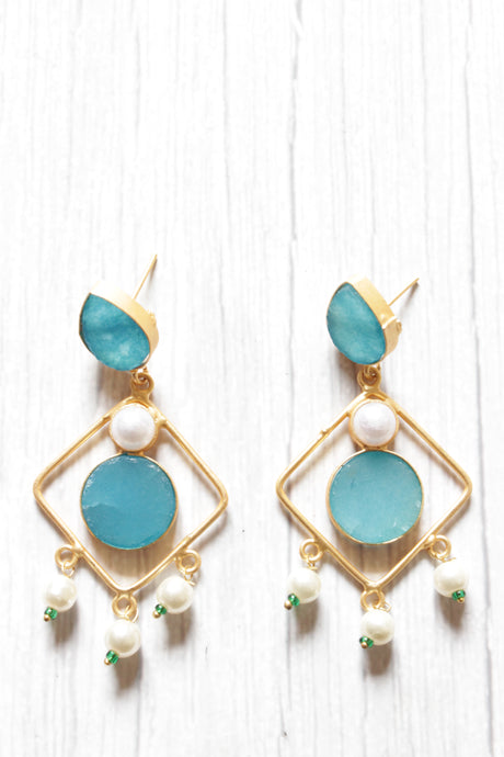 420 INR600Unit price /UnavailableSky Blue Natural Gemstones Embedded Gold Plated Earrings Embellished with White Beads