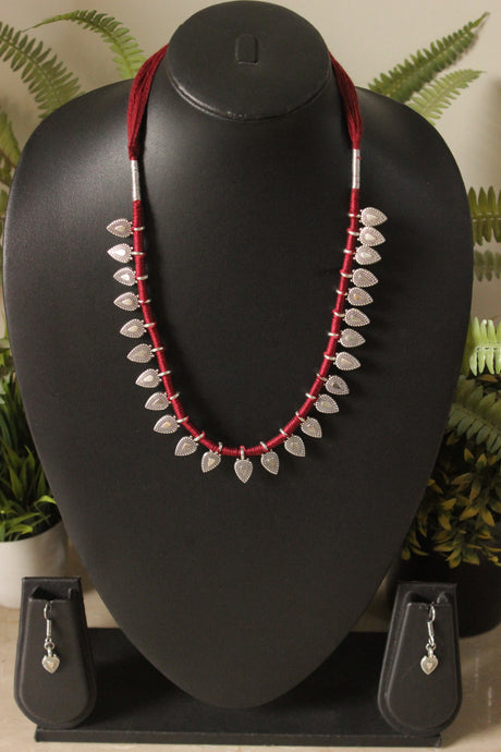 475 INR600Unit price /UnavailableTear Drop Shaped Silver Metal Charms Braided in Red Thread Necklace Set