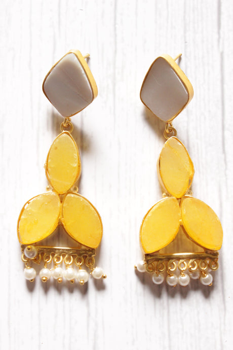 399Unit price /Unavailable Teardrop Lemon Yellow & Grey Natural Stones Embedded Brass Dangler Earrings