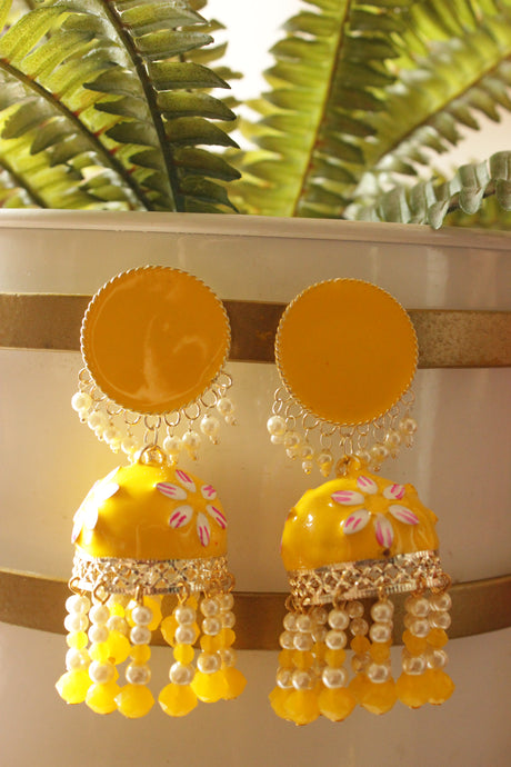 550Unit price /Unavailable Sun Yellow Khadi Fabric Handcrafted Jhumka Dangler Earrings