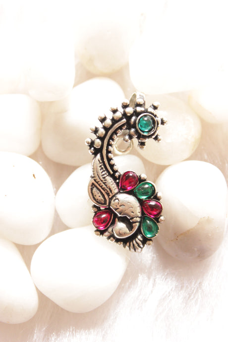 350 INR499Unit price /UnavailableTraditional Stones Embedded Silver Finish Peacock Shape Clip-On Maharashtrian Nath