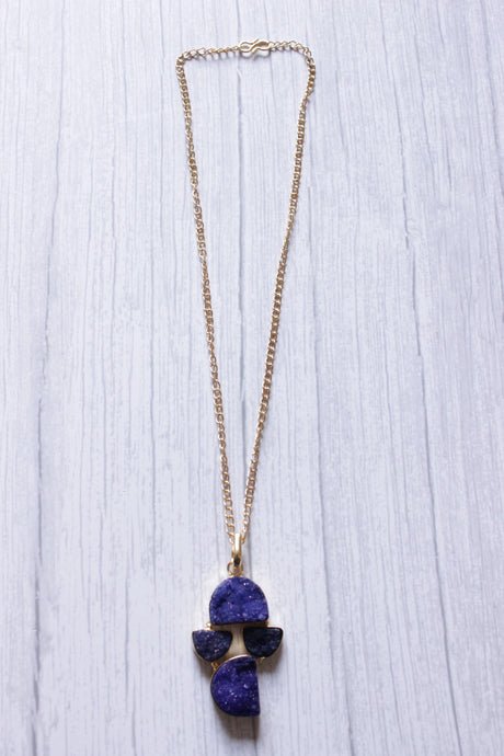 Titanium Ink Blue Sugar Druzy Gemstone Embedded Gold Plated Necklace