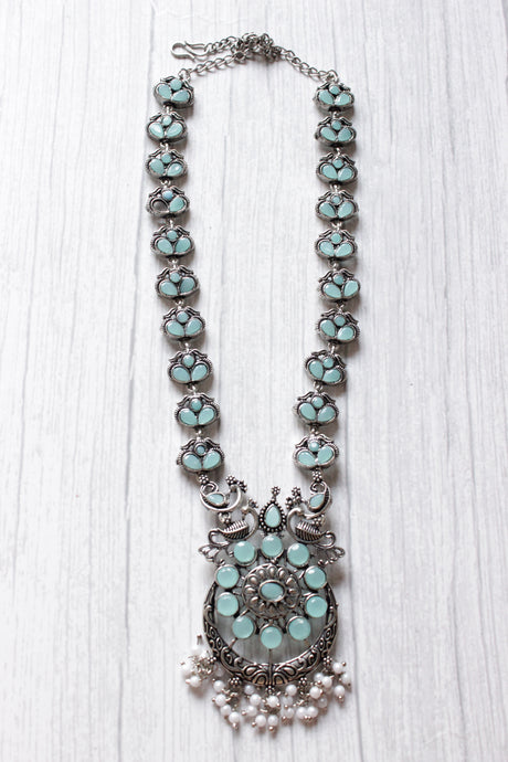 Turquoise Stones Embedded Intricately Detailed Necklace Set with Statement Necklace