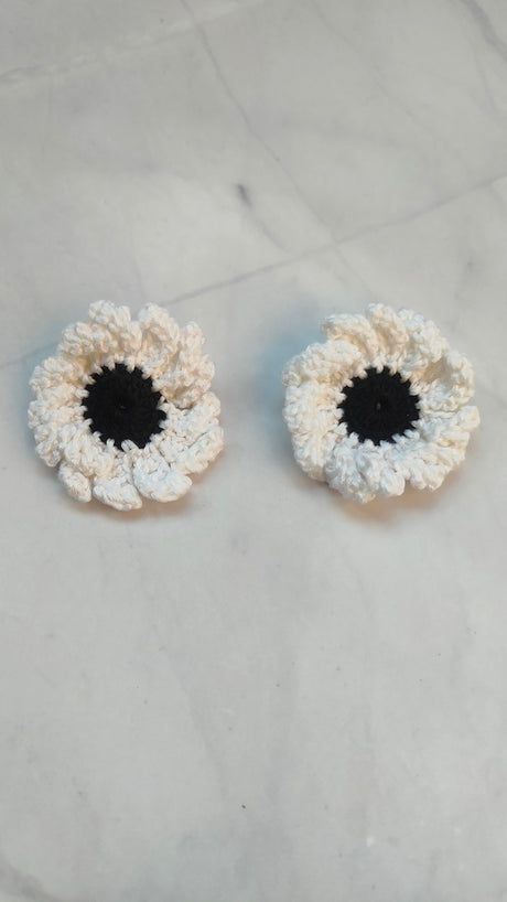 425 INR450Unit price /UnavailableWhite and Black Flower Handcrafted Crochet Earrings