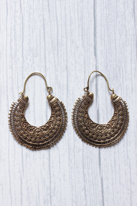 525 INR1,000Unit price /UnavailableVintage Brass Spiral Bali Intricately Detailed Handmade Hoop Earrings