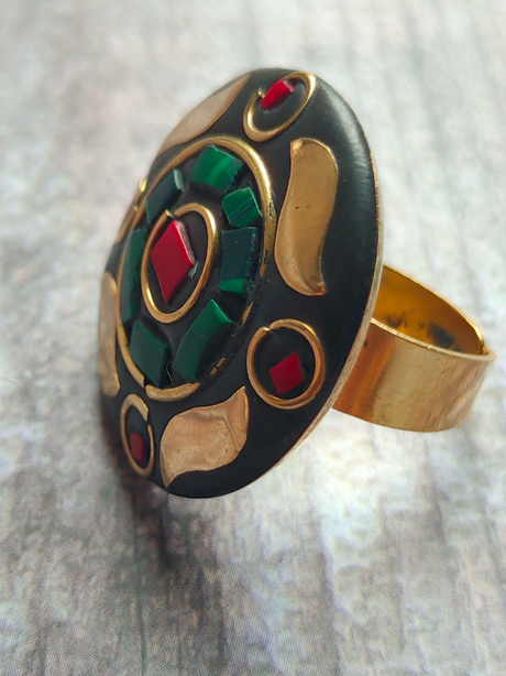 425 INR500Unit price /UnavailableBlack, Green and Red Tibetan Ring with Gold Detailing