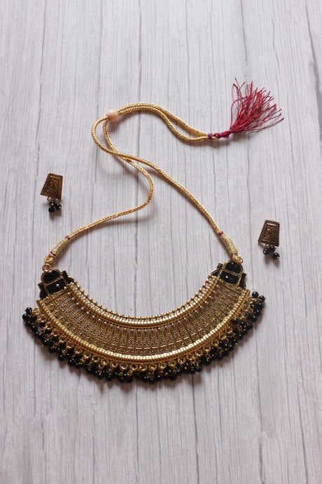 300 INR600Unit price /UnavailableBlack Stones Detailing Gold Finish Choker Necklace Set
