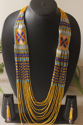 Mustard Yellow and Purple Hand Beaded Long Necklace Set