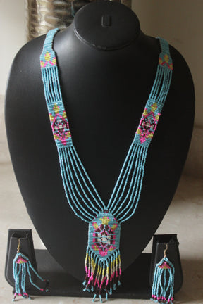 Sky Blue & Multi-Color Hand Beaded Long Necklace Set