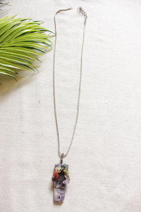 7 Chakra Tree of Life Wrapped on Purple Shaded Natural Gemstone Pendant Silver Finish Brass Chain Necklace