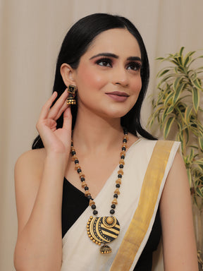 Handcrafted Black & Golden Terracotta Necklace Set is backordered and will ship as soon as it is back in stock.