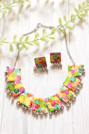 Multi-Color Resin Necklace Set Embellished with Ghungroo Beads Accents and comes with Stud Earrings