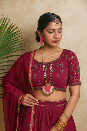 Pink Fabric & White Pearl Beads Matt Gold Finish Vibrant Necklace