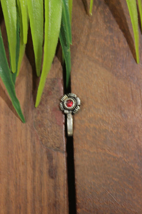 Red Center Stone Embedded Flower Shape Oxidised Finish Clip On Nosepin