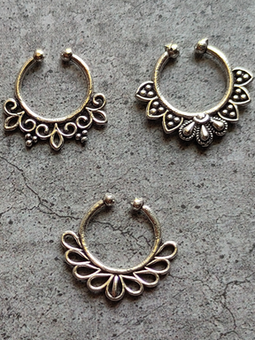 Three Oxidised Silver-Plated Stone Studded Tribal Septum Nosepins