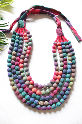 5 layer Shades of Pink and Blue Fabric Beads Handmade Necklace