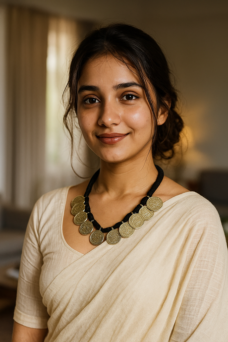 525 INR600Unit price /UnavailableVery low stock (1 unit)Black Fabric Beads 3 Layer Handmade Necklace