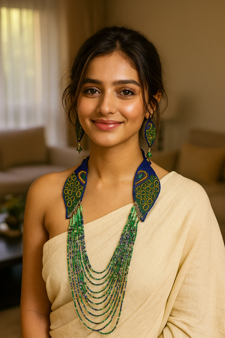 275 INR500Unit price /UnavailableVibrant Peacock Colors Beaded Multi-Layer Chain Closure Necklace Set