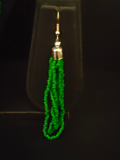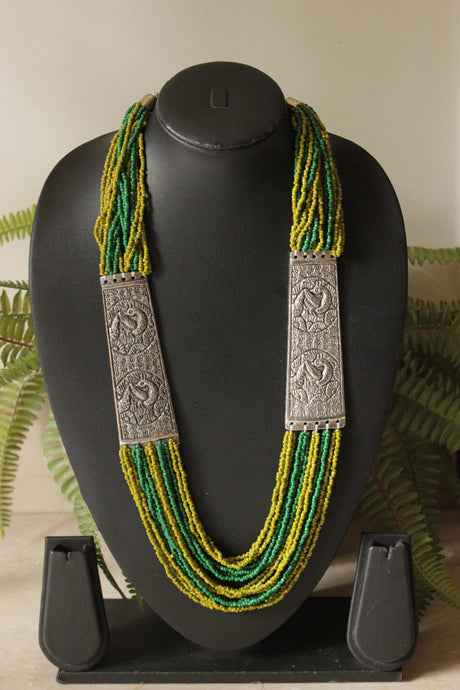 Green Beaded Multi Layered Necklace Set with Metal Detailing