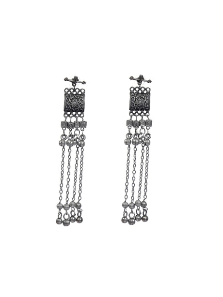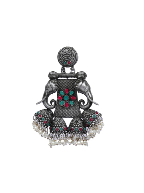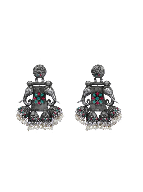Sale price 425 INR Regular price 550Unit priceUnavailable Multi-Color Rhinestones Embedded Oxidised Finish Statement Long Afghani Jhumka Earrings