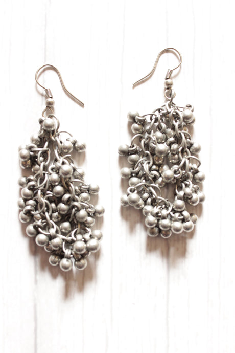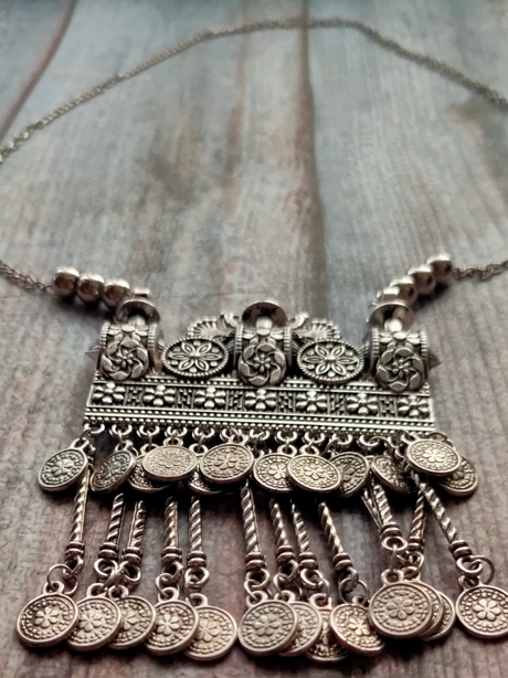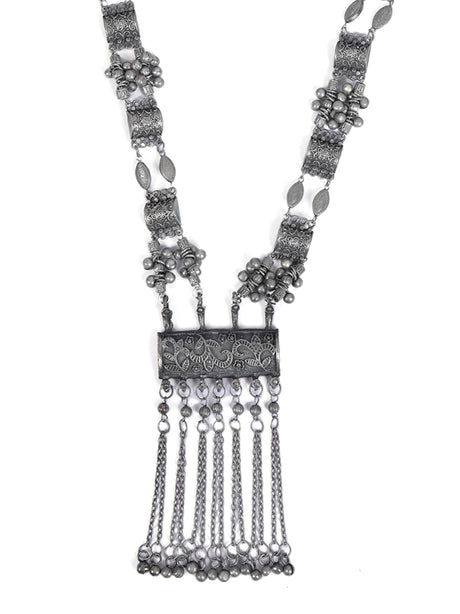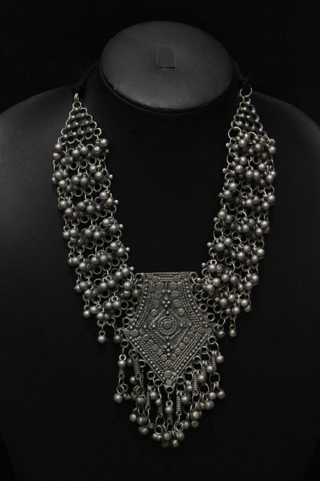 Metal Beads Embellished Dori Closure Oxidised Finish Chain Necklace