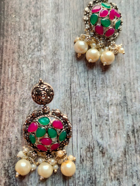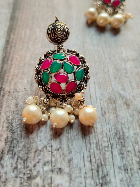 Multi-Color Glass Stones Embedded Afghani Earrings
