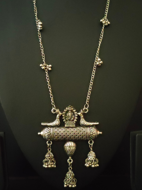 Long Chain Oxidised Silver Bird and Ganesha Necklace