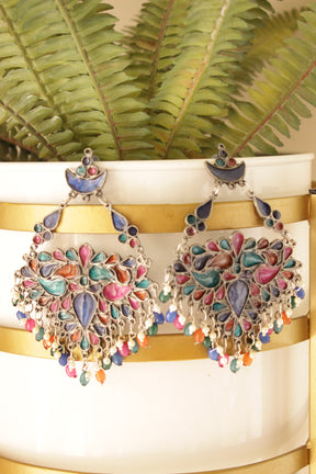 Multi-Color Glass Stones Embedded Afghani Earrings