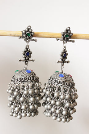 Multi-Color Stones Embedded Long Jhumka Earrings